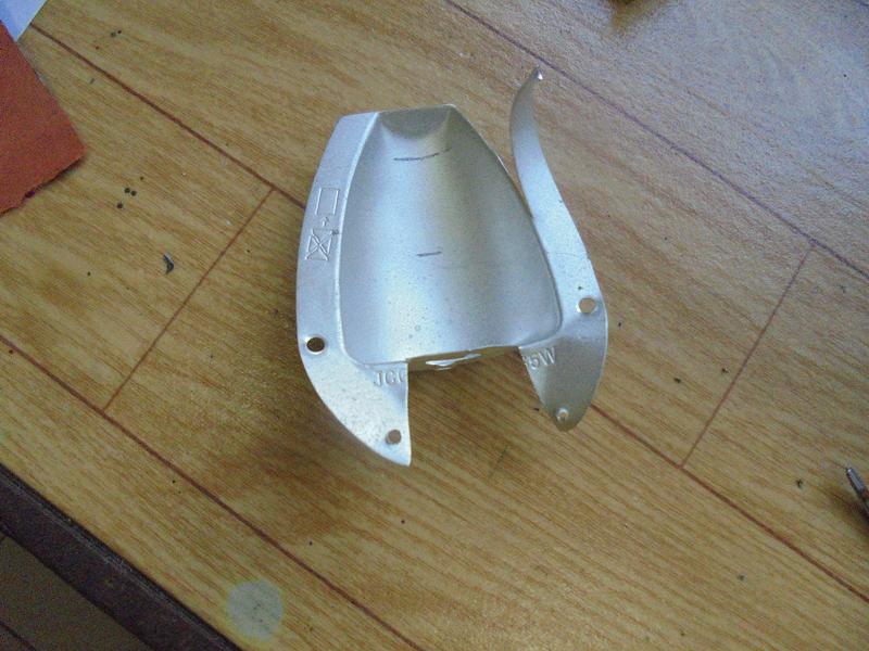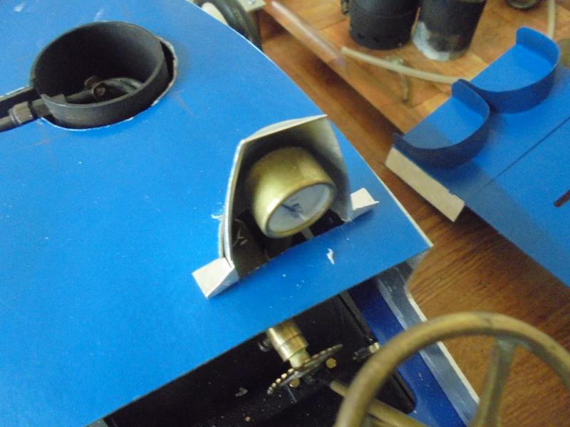 On peut se contenter d'ouvrir le capot avant pour le passage du manomètre, comme sur le montage en carton ... ou alors déplacer le mano pour l'amener à côté du volant ... Ou alors, partir d'un réflecteur d'ampoule pour le dissimuler en partie ... si on en a gardé un dans les trucs qu'on met de côté, au cas où, un jour ... |