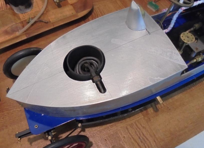 Deux détails intéressants : . un châssis imposant permettant de dissimuler une partie de la mécanique . une carrosserie dont le capot avant présente une ouverture : l'idéal pour l'échappement des gaz chauds de notre chaudière monotube ...