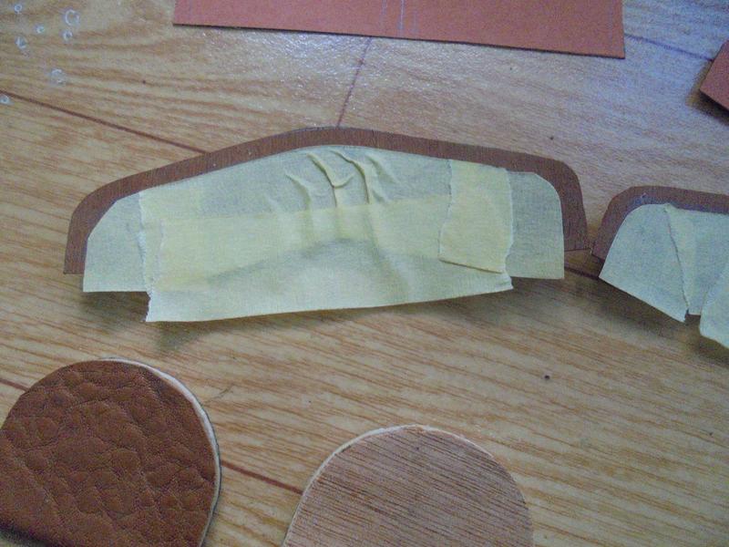 On fabriquera les fonds en contreplaqué de 3 mm, le matelassage avec du skaï qui sera collé sur le fond puis sur un gabarit. Les coquilles sont découpées dans le placage que l'on peindra.
