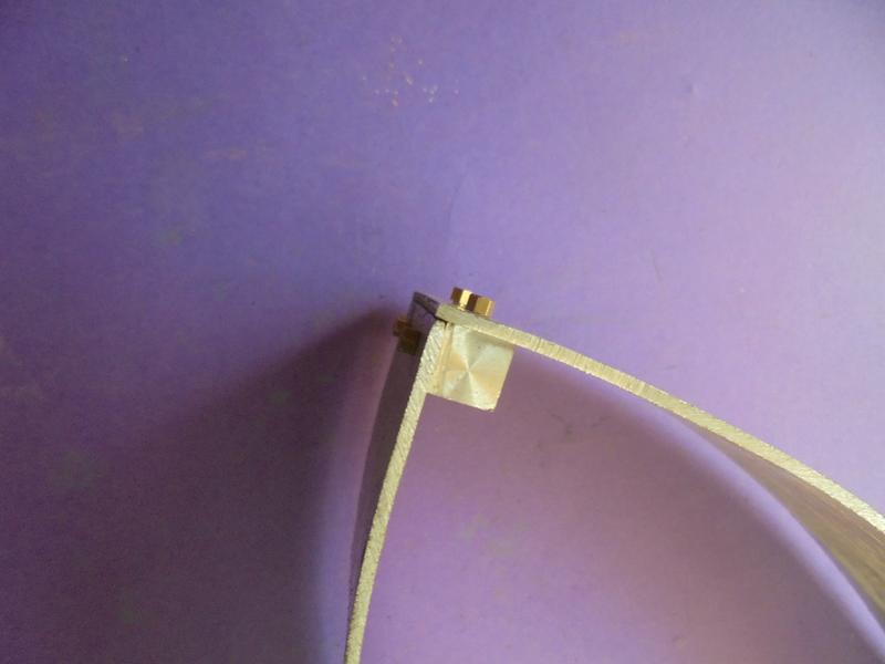 Le support étant biseauté, des lumières sont prévues sur le support car il n'est pas évident de réaliser la soudure à l'étain correctement : en faisant bouger ce support notre tige de volant sera perpendiculaire latéralement.
