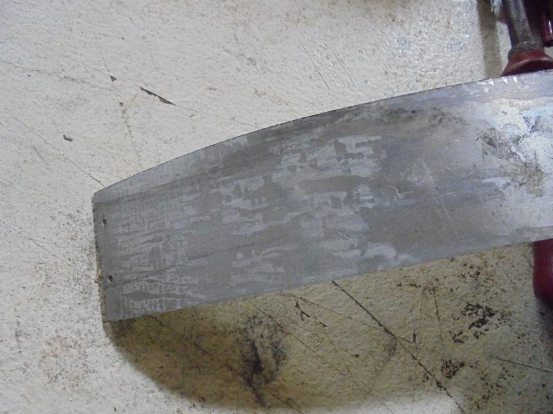 | Nettoyage de l'alu avant de continuer : cet alu de récupération devait probablement être protégé par un feuille collée. Pour obtenir par la suite une belle peinture, il faut enlever toutes ces traces.