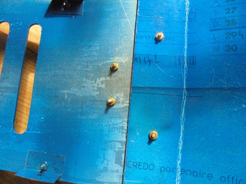 Le plancher supérieur devra être percé pour recevoir les deux vis M3. Pas facile de trouver l'emplacement exact, aussi le mieux est de prévoir une boutonnière. |