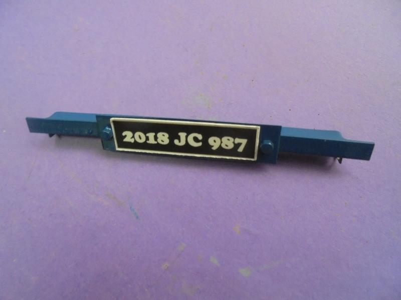 Une équerre pour la plaque d'immatriculation, équerre sue l'on replie aux extrémités pour être maintenue par les vis tenant les lames de ressort. |