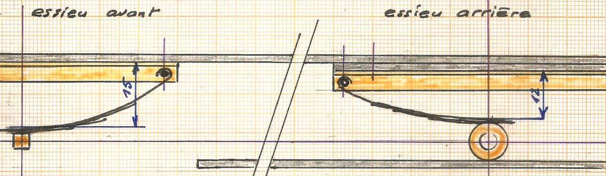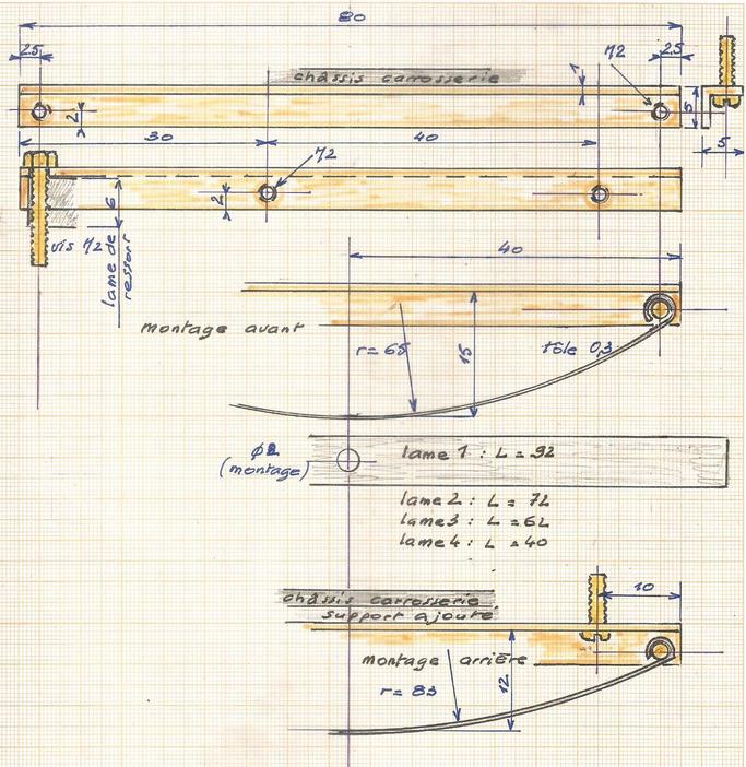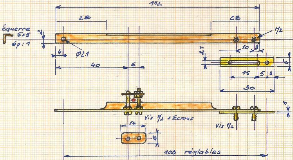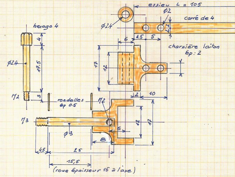 La largeur des pattes sur les photos ne correspond pas au croquis qui a été repris pour l'adaptation à l'essieu réalisé avec un carré en laiton de 4 x 4.