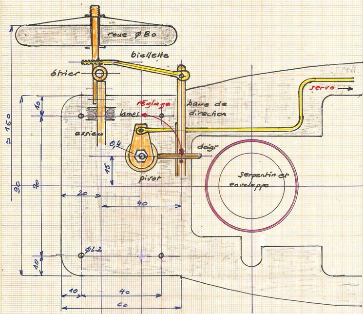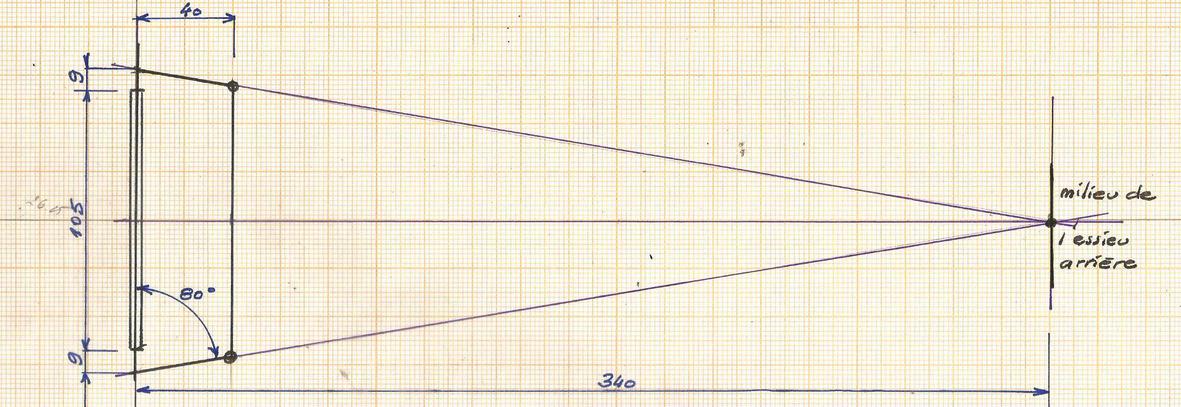 Pour le réaliser, on tiendra compte de l'épure de JEANTAUD qui fixe l'angle des biellettes. Croquis de principes auquel il faudra appliquer vos dimensions de m^me que pour tous les croquis d'ailleurs. |