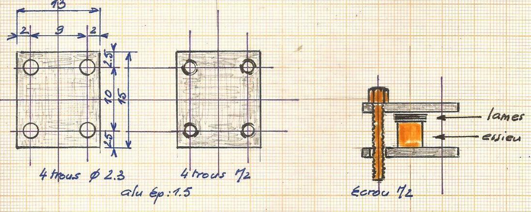 | Les trous de l'équerre sont percés 1.6 pour être taraudés à M2 ce qui facilite le montage.