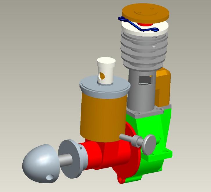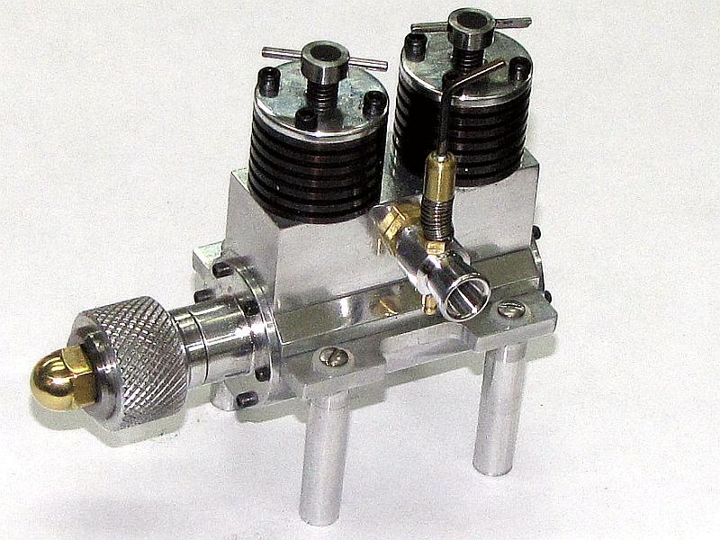 Voici encore une présentation d'un de ces moteurs à la finition exceptionnelle que construit Les Mons. Celui-ci a un certain air de famille avec l'ED, il a été conçu par Gems Suzor. Ce moteur a un alésage de 12mm et une course de 17mm pour un cylindrée de 1.92 cm3. D'une conception très avisée il utilise une distribution rotative à induction dans l'arbre de vilebrequin. La respiration du moteur se fait via une virole rotative réglable que l'on voit au sommet du réservoir de carburant. Pour le reste il demeure conventionnel à l'exception d'un maneton vissé, peu courant à cette époque.