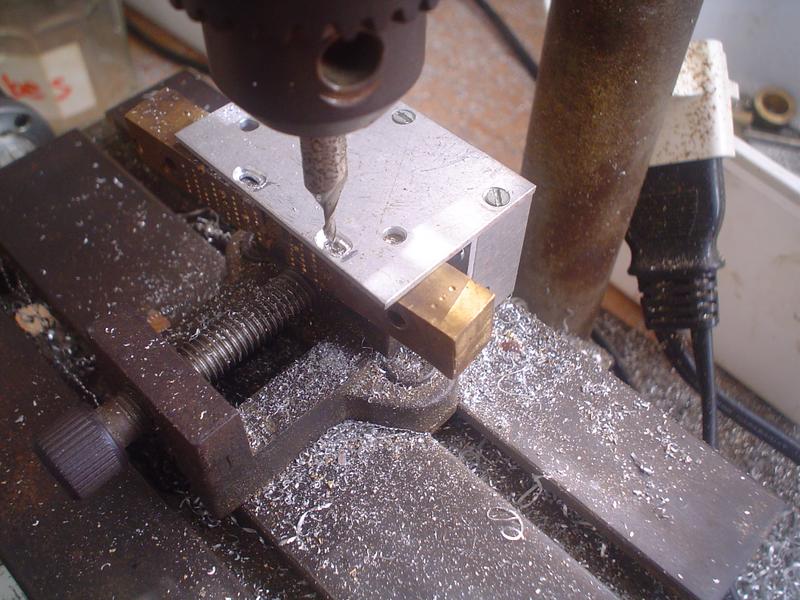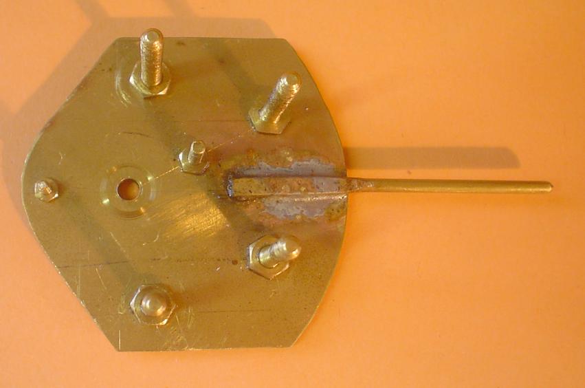 Elle est obtenue avec du laiton de 1 mm pour la plaque support, des vis M3 x 20 pour les axes et du laiton de 0,5 pour la contre-plaque.