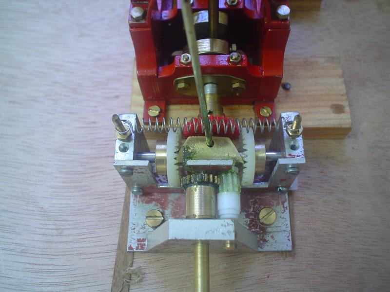 Petit essai qui sera transformé un jour avec un moteur plus puissant et à double-effet et probablement en miniaturisant le montage par l'utilisation de plus petites roues dentées en laiton … Avec des roues plus petites, le pignon E ne sera pas peut-être pas aligné avec D et O !