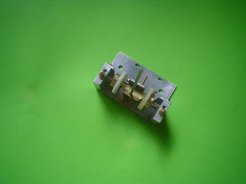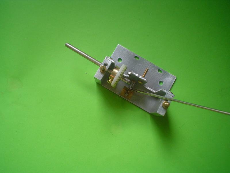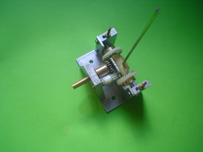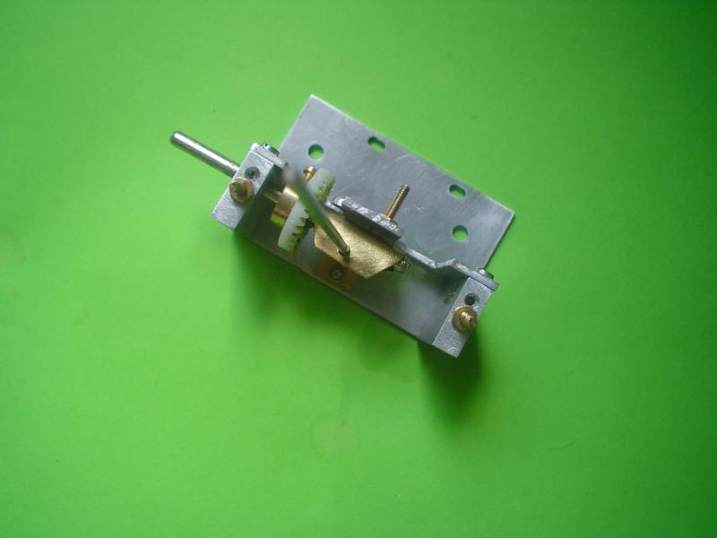 | | 4 vis M3 pour les axes, 1 vis M2 pour le petit pignon, 1 vis M1,6 pour le tendeur; levier de commande soudé à l'étain. |