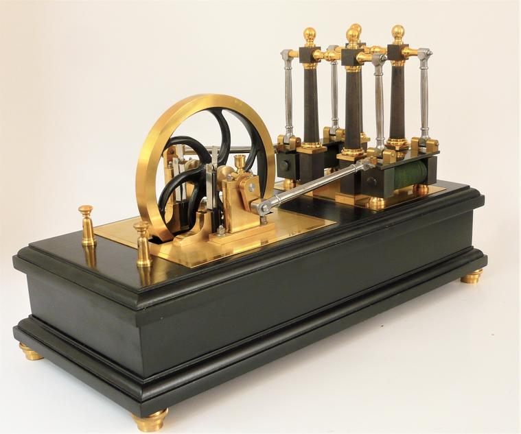 moteur à 3 bobines | J'ai trouvé ce moteur à 3 bobines dans les photos de " Pinterest " alors cela m'a donné envie de le faire ! Il mesure 25 cm de haut sur une base de 20X26 cm et pèse 4,6 kg ! les volant ont un diamètre de12 cm. Comme tous mes moteurs il fonctionne avec une batterie de 6,5V !. |