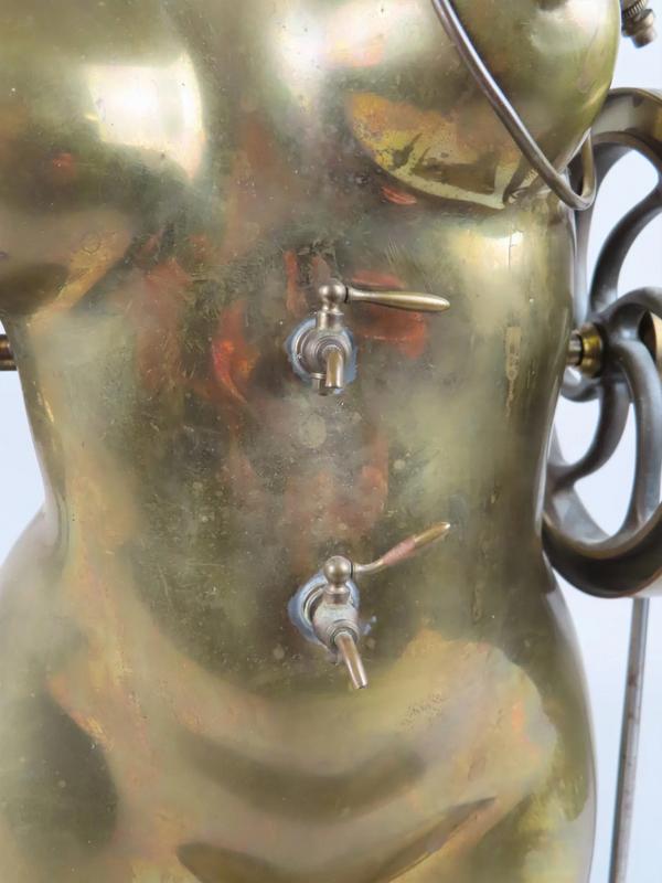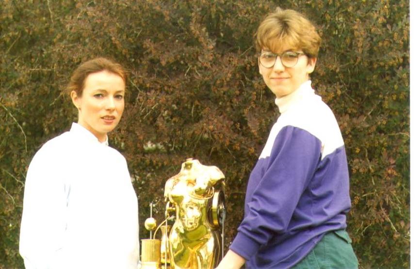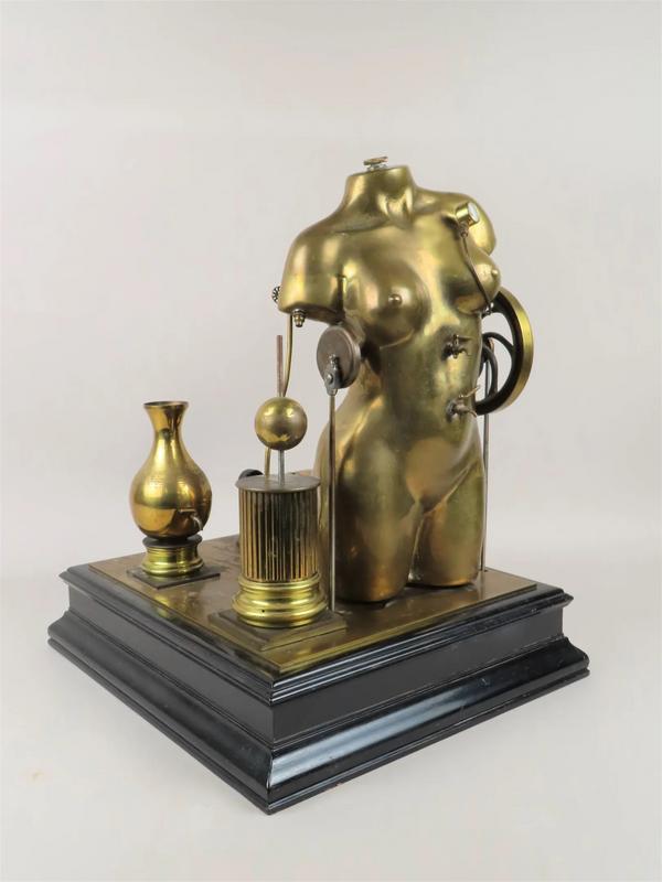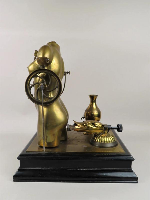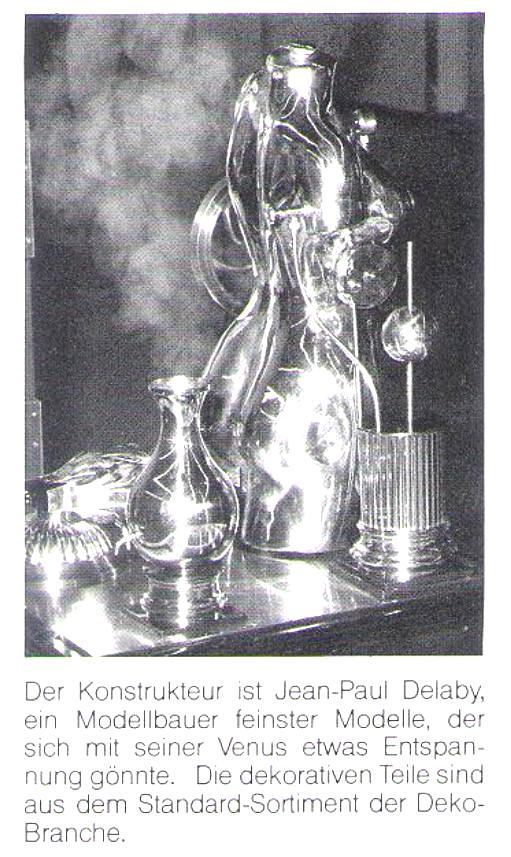 "J'ai un ami qui possède une très belle collection de machines à vapeur, pour la plupart achetées dans des ventes aux enchères. Il se trouve d'ailleurs que certaines ont été dans ma collection.0r, il vient d'acheter aux enchères ce que j'avais appelé "la vénus à vapeur" qui était destinée à animer un stand d'une exposition sur le modélisme Porte de Versailles en 1990 ...On venait de "fêter" le bicentenaire de la révolution française et cela m'avait inspiré...J'habitais alors dans le Poitou (Sa.fa.va.) et l'avait terminée tard dans la nuit avant d'aller la livrer à Paris et de mettre en marche ( comme le montre l'article d'un reporter allemand venu à pour l'occasion ) Le corps faisant office de chaudière était chauffé par un "camping gaz " caché dans le socle et qui chauffait les fesses de la "Venus" actionnait un moteur caché dans ce qui était le billot d'où sortait une tige transversant une boule représentant une tête qui tombe ! ... (Un peu macabre tout ça, j'en conviens !). Une photo montre ma femme d'alors et ma fille qui m'aident à la charger dans la voiture pour nous emmener aussitôt à Paris ! On peut voir qu'elle était "rutilante", ce qui n'est plus le cas actuellement, hélas... Voilà, j'espère qu'elle fera sourire vos nombreux visiteurs." |