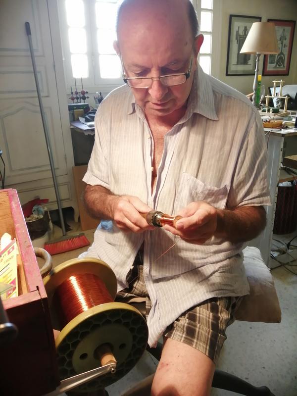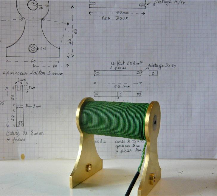 L'horlogerie a aussi utilisé les électroaimants et je me suis lancé dans la construction de trois pendules qui utilisent des électroaimants et qui sont décrites dans un livre de construction de J.Wilding...J'en ai trois en construction dont deux pour des amis qui me fournissent la matière première introuvable ici !" |