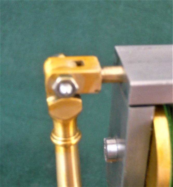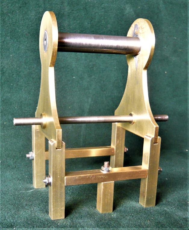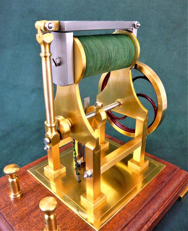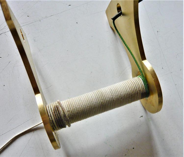 Le fin guipé utilisé fait un peu plus de 9/10ème. Il y a donc environ 75 m de fil sur la bobine ! J'ai utilisé du méplat étiré de 6X20 mm ! Il n'ai pas parfaitement doux, mais assez facile à trouvé ; il est d'aspect noirâtre, mais avec du papier de verre, ça part ! la course est de 10mm et il faut laisser environ 1 mm pour ne pas toucher la partie verticale avant. l'articulation de la biell est faite dans du méplat de laiton 8X6 usinée avec un rond de 4mm qui rentre dans le méplat. La bielle est faite en 5 pièces ( carré de 8 en haut et bas ) 2 petits ronds de laiton et une tige de laiton légèrement conique dans les deux sens le tout relié par de la tige filetée de 3mm. L'arbre moteur fait 5mm et le volant 80 mm de diamètre. Le tout est placé sur un planche d'acajou de 14X17 cm. Alimentation par deux piles 4,5V mises en parallèle ou accus de 6,5V … |