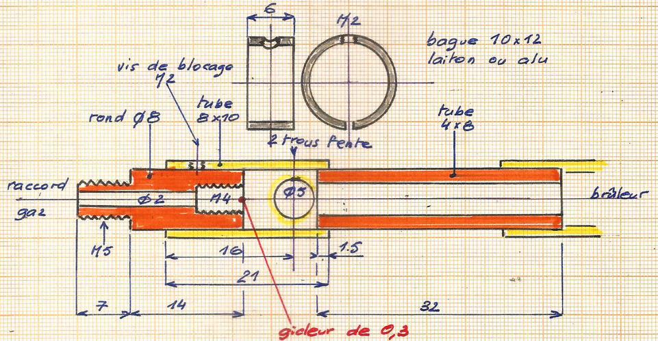 Le brûleur existe déjà. Il est équipé d'un nouveau porte-gicleur réglable. Pour les plans voir dans cet album - paragraphe 3 (2) |