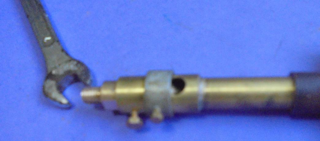| Petit problème de serrage rencontré sur le gicleur réglable : pour bien serrer l'écrou, on usine deux plats (clés de 7) en bout du porte-gicleur. |
