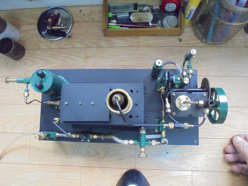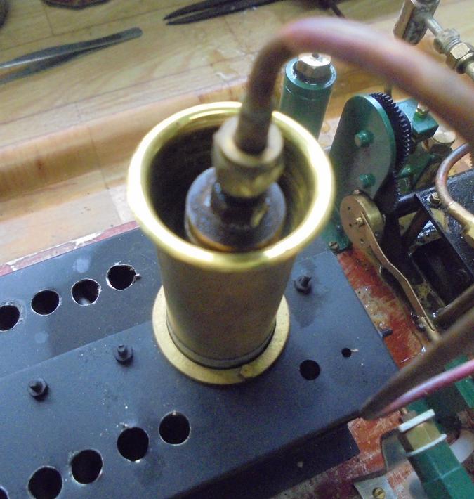 Depuis qu'il est construit ce moteur a tourné des heures, à la "vapeur normale" puis en "vaporisation instantanée" et toujours avec un graisseur à déplacement. Problème, impossible de savoir, surtout quand le graisseur est de petite taille si le moteur reçoit sa dose d'huile. Et il a souvent tourné sans huile !