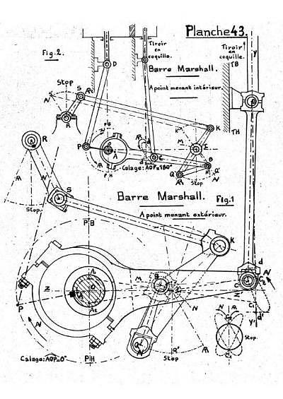 | Dans la seconde version, l'excentrique est calé dans le prolongement du maneton comme sur le croquis de Marshall.