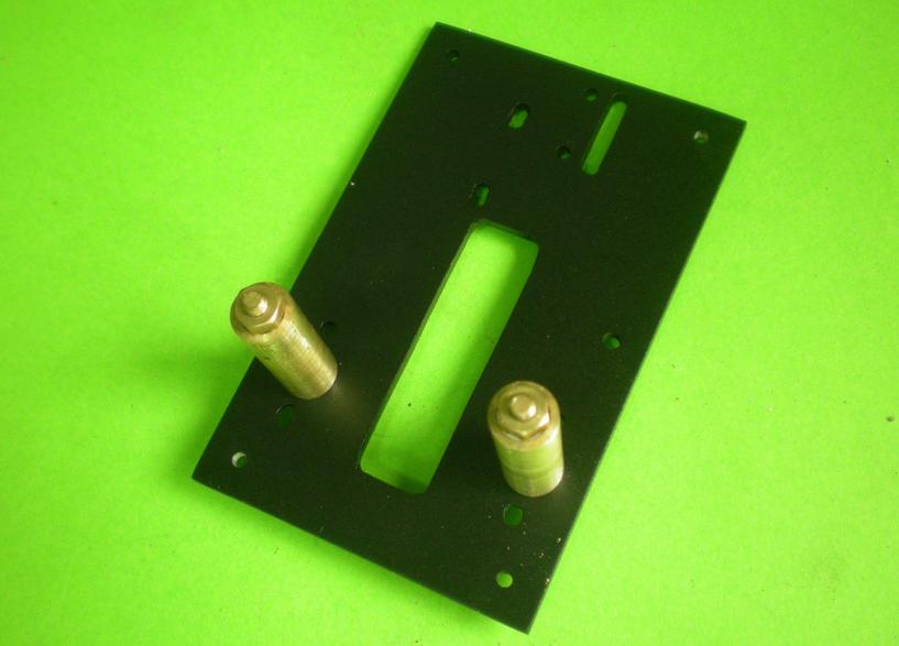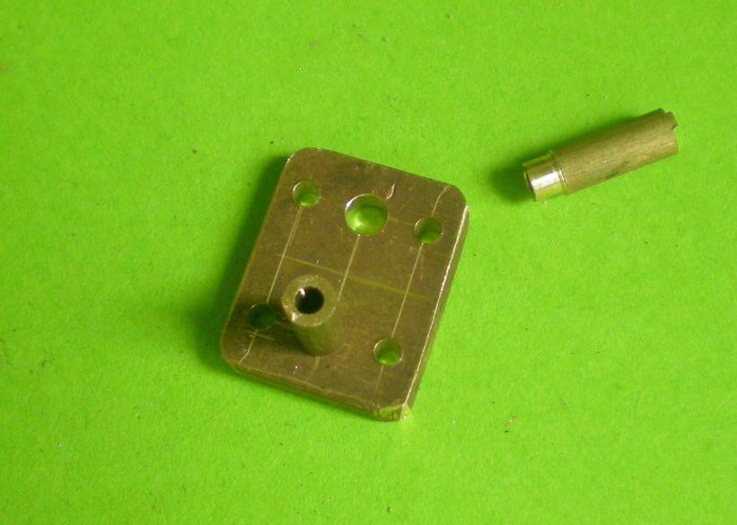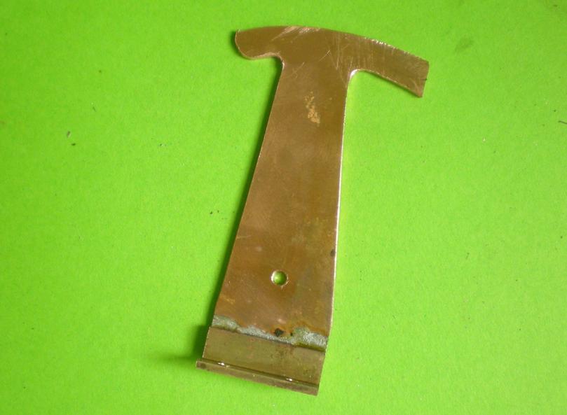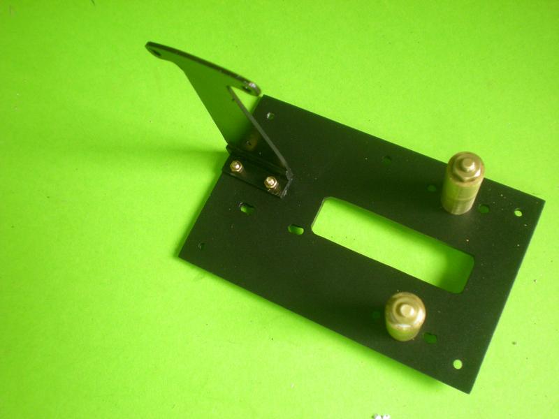 | La platine. Elle sera modifiée pour permettre le montage du levier : la fente arrière débouche désormais sur le côté arrière comme sur le plan. Pour ne pas avoir de problème lors du montage, les jambettes sont boulonnées. |