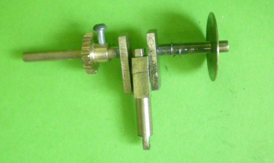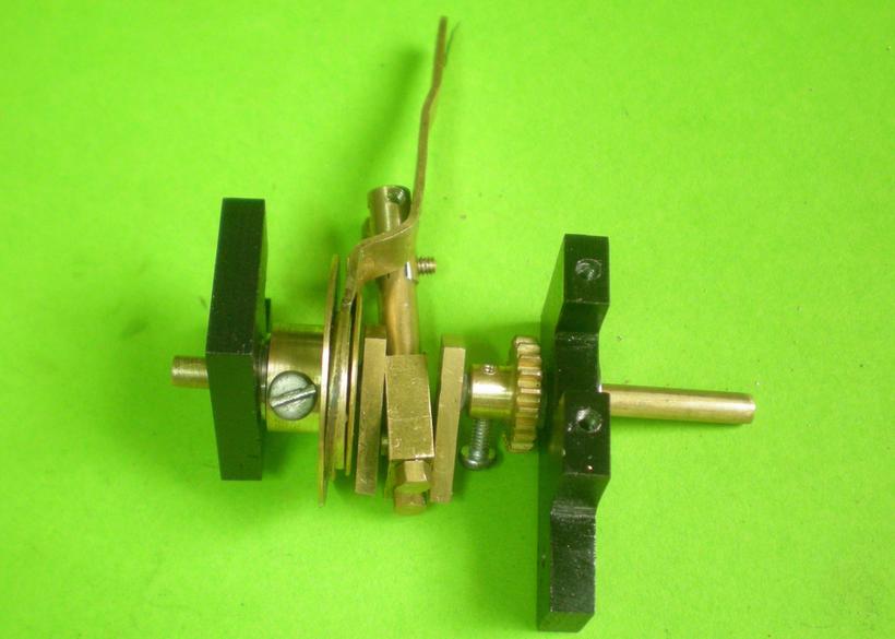 | Un premier montage avec l'excentrique et sa bielle. Ne pas oublier le petit ressort pour le serrage du disque intérieur de diamètre 16. |