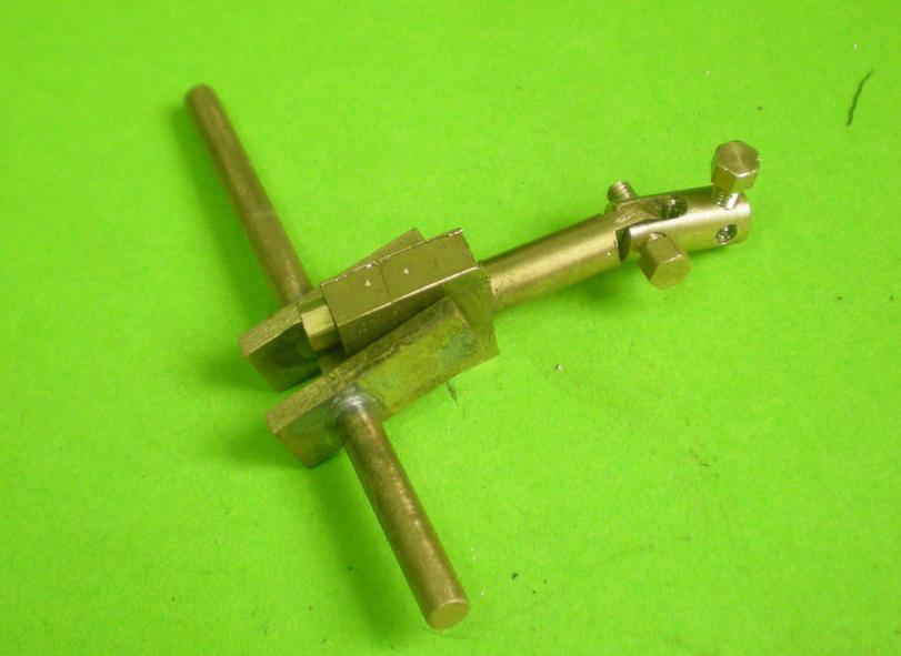| Ce n'est pas vraiment la biellette que j'avais prévue mais c'est la plus pratique pour obtenir le bon alignement du tiroir sur la bielle de l'excentrique. |