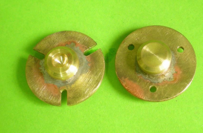 | Les chapeaux sont terminés, presque ! Il reste, après la soudure à percer à diamètre 2 le passage de la tige du piston. En retardant cette opération, on assure une meilleures concentricité. |