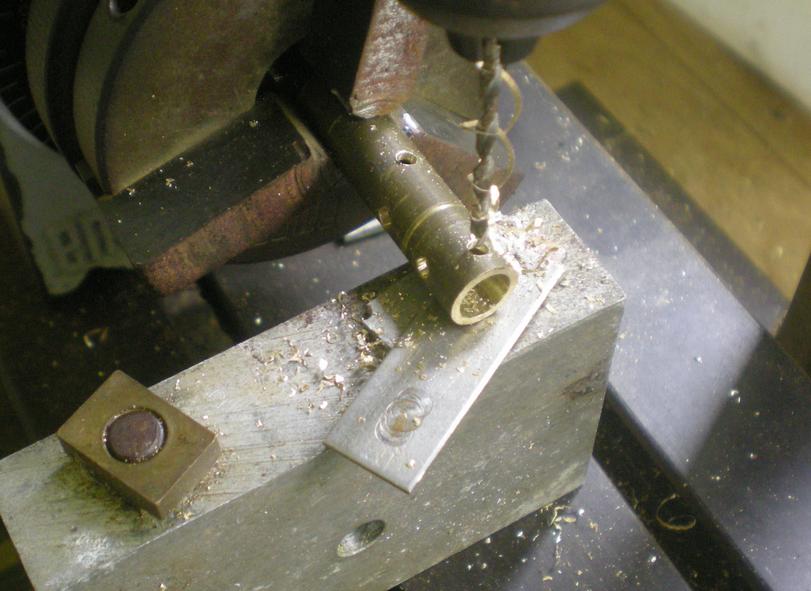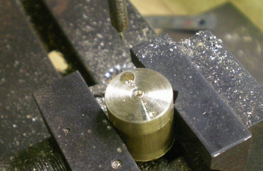 | Dans la foulée, perçage des trous d'admission et d'échappement en haut du cylindre. |