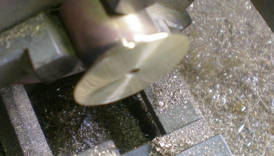 | Début de la séparation de la rondelle à 1.5 du bord, sans aller jusqu'au bout de l'opération en laissant un peu moins de 3 mm. |