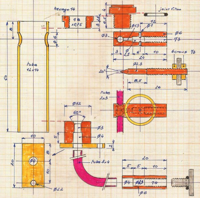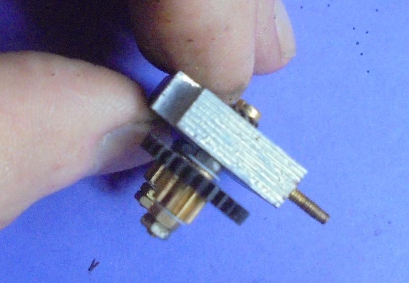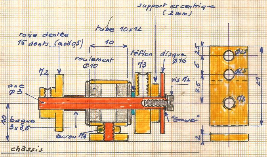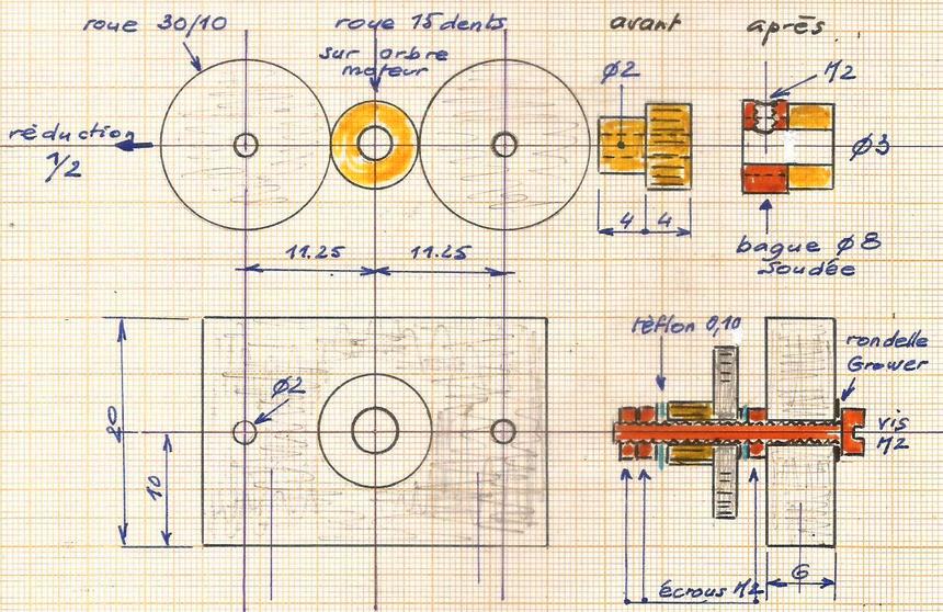 Sur le même plan on voit la modification de la roue dentée de 15 dents. Pour elle, pas de brasure à l'argent mais à l'étain : la vis de blocage est une sécurité car elle maintient les deux pièces.