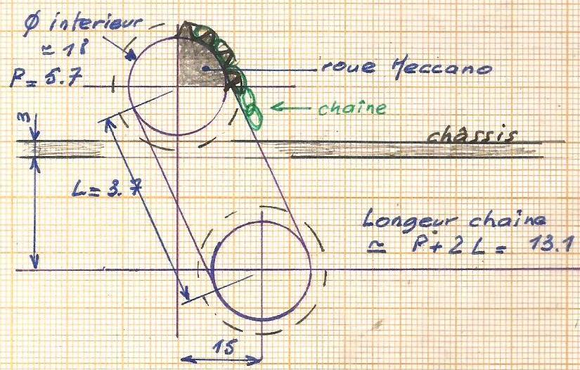 | Des lumières pour régler la tension. Ici, lors du montage définitif, il me faudra enlever 1 maillon de la chaîne pour la tendre un peu plus (attention, un très léger flottement est nécessaire). |