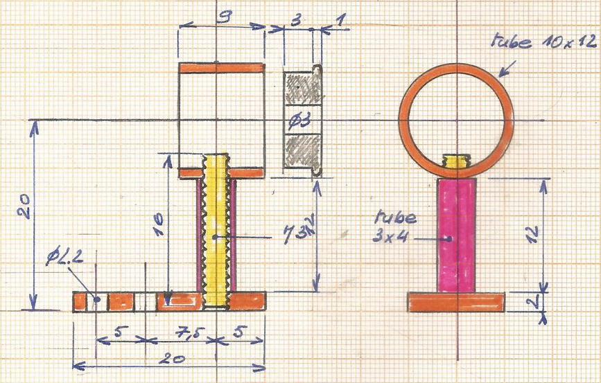| Montage avec un soutien réaliser avec une bague de 4 x 10 venant s'enfiler sur une tige filetée M4. |