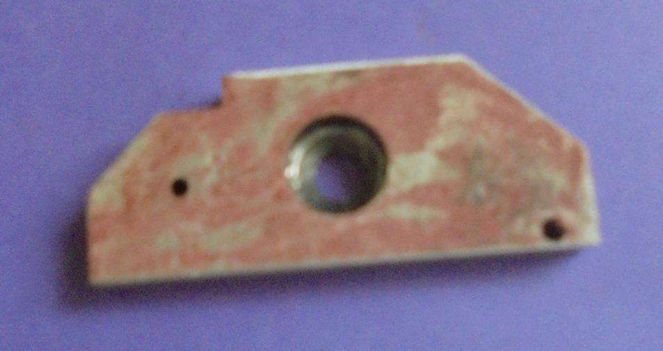 . maintien de la valve : l e système précédent par écrou a été abandonne à cause de fuites importantes. On place tout simplement un autre joint en téflon sans prévoir de passage central pour la partie arrière et on installe une équerre de maintien qui se vissera sur le châssis. |