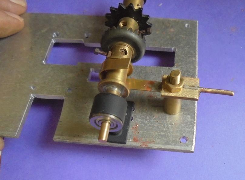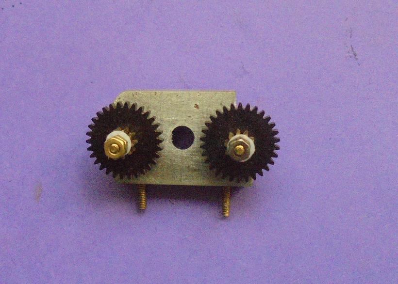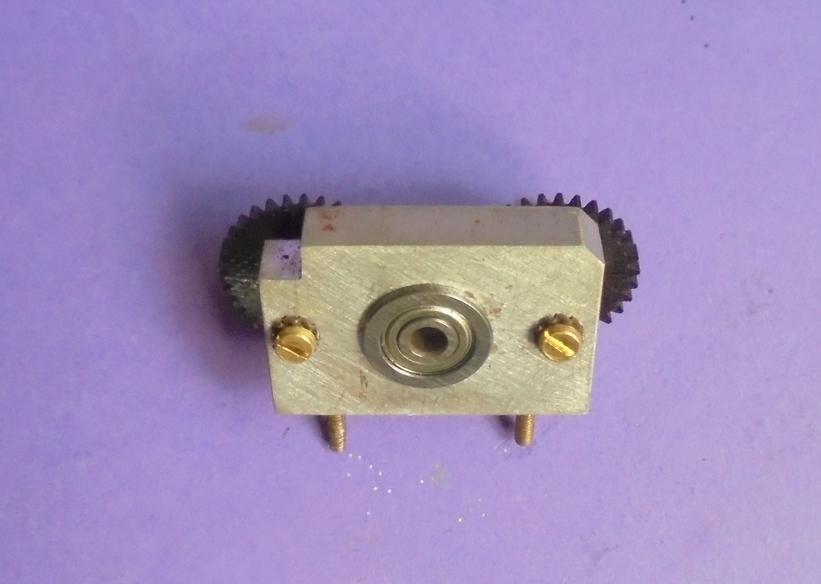 | Problème de perçage des axes (vis M2) des roues dentée : le perçage à 11.25 n'est pas facile ! alors on le fera à 11.3 ... environ ! Essai et si on s'est un peu raté, on reperce à 2.1 voire 2.2 : le blocage de la vis le permet. Et si l'erreur est plus grande, on perce l'autre palier.