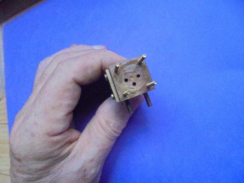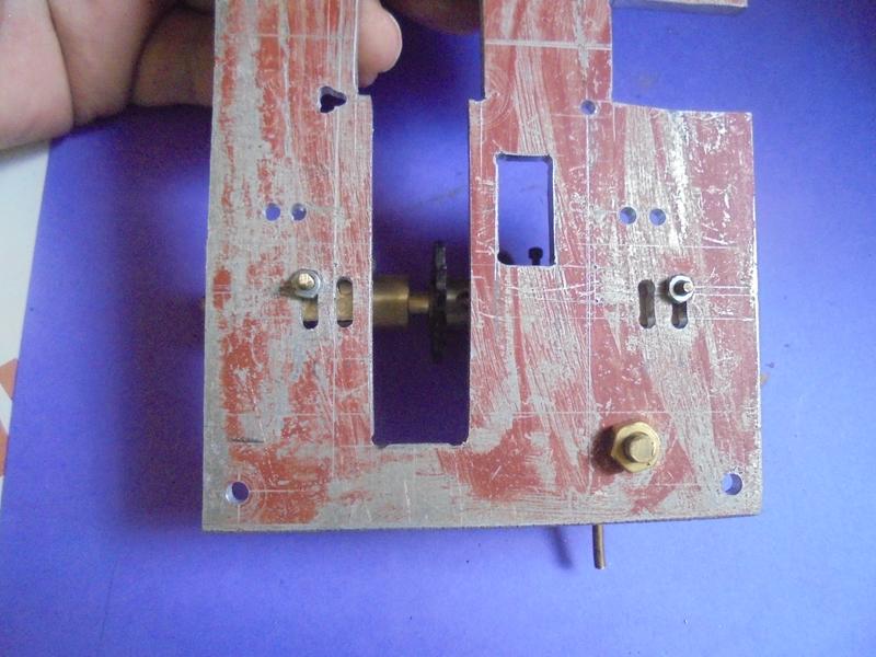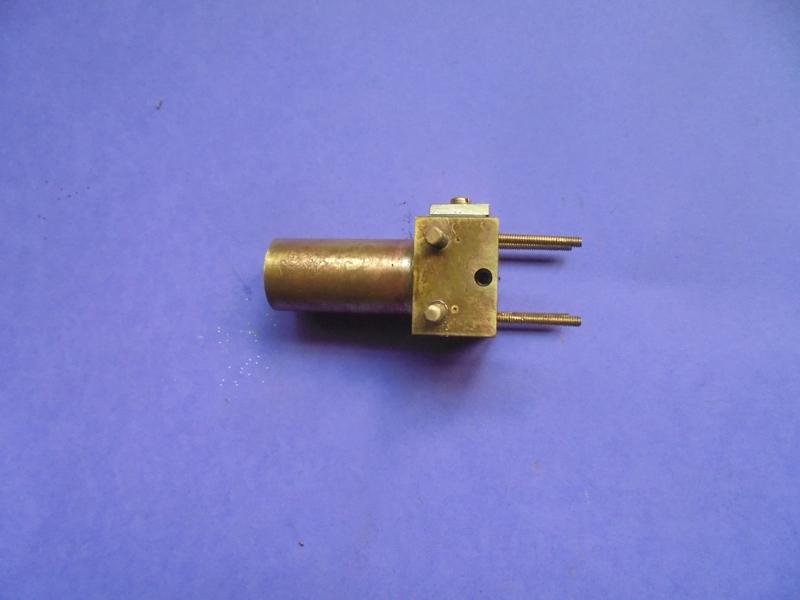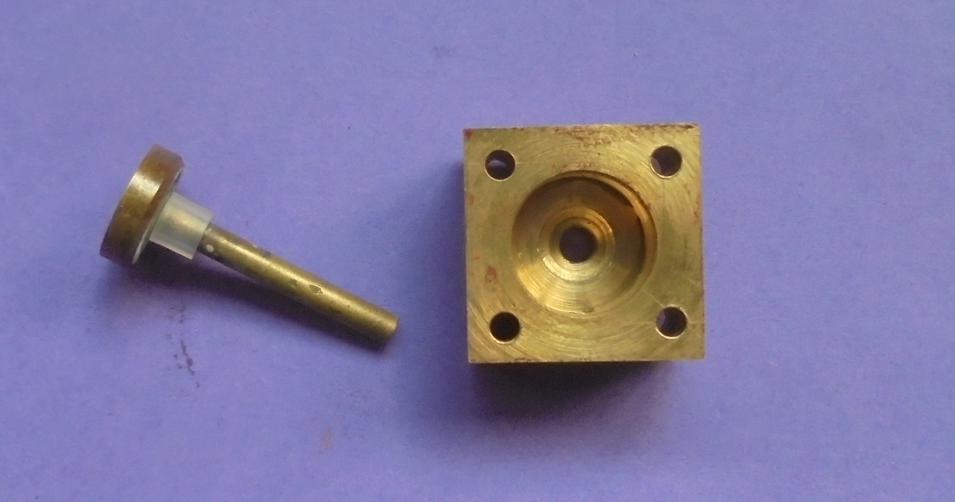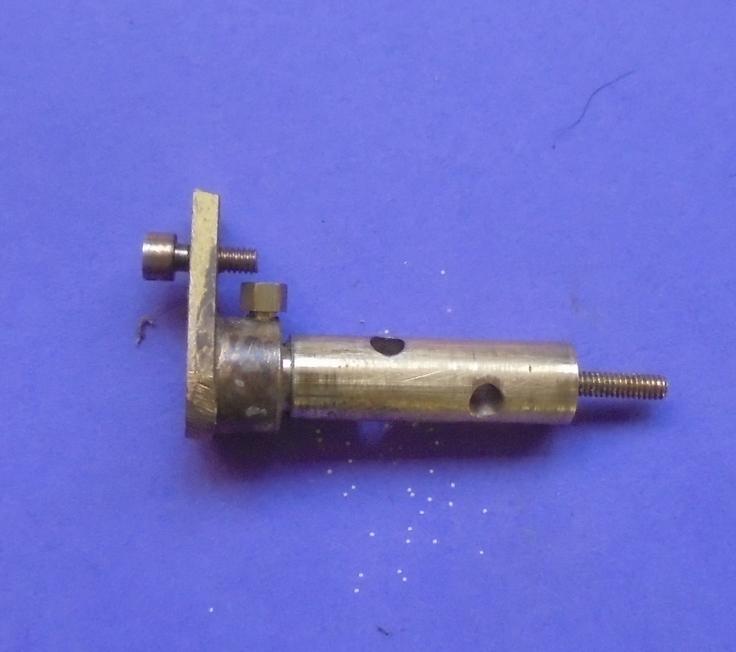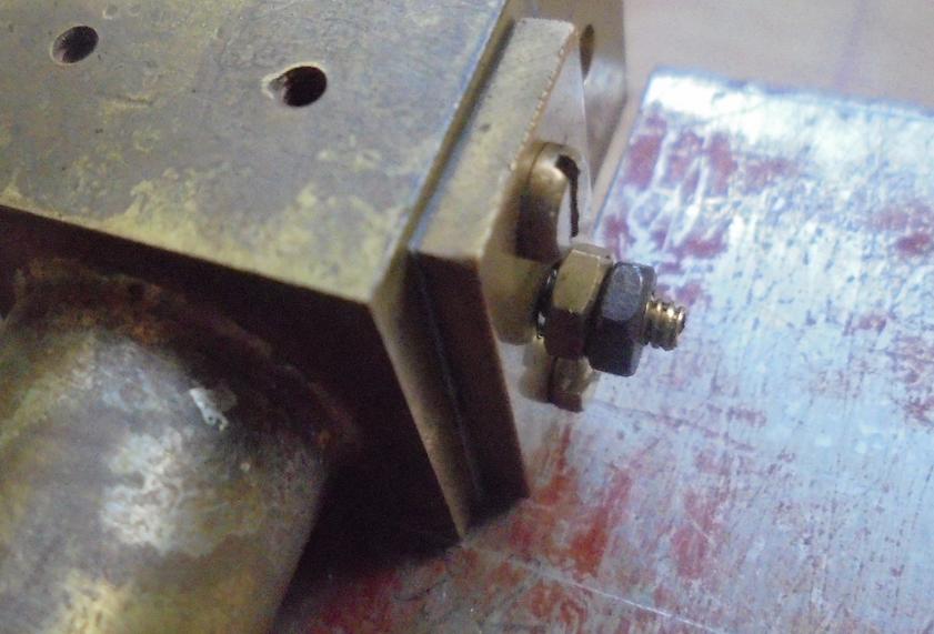 Par rapport aux moteurs précédents, le maintien de la valve se fera en ajoutant à la valve un goujon qui traversera un plat de laiton : 2 écrous l'empêcheront de se déplacer latéralement (laisser un petit jeu pour qqu'il n'y ait pas blocage).
