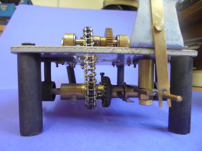 voilà de quoi s'amuser et prévoir un petit ensemble mécanique qui pourrait servir de démonstration lors de manifestations : il suffit d'emmener un pneu bien gonflé pour entraîner l'ensemble ... Là j'ai ajouté un démarreur mécanique dont on trouvera le plan dans cet album |