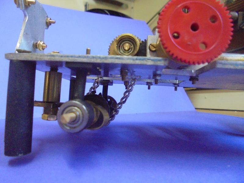 Plus bas le montage des roues dentées qui vont assurer une réduction de 1/2. |
