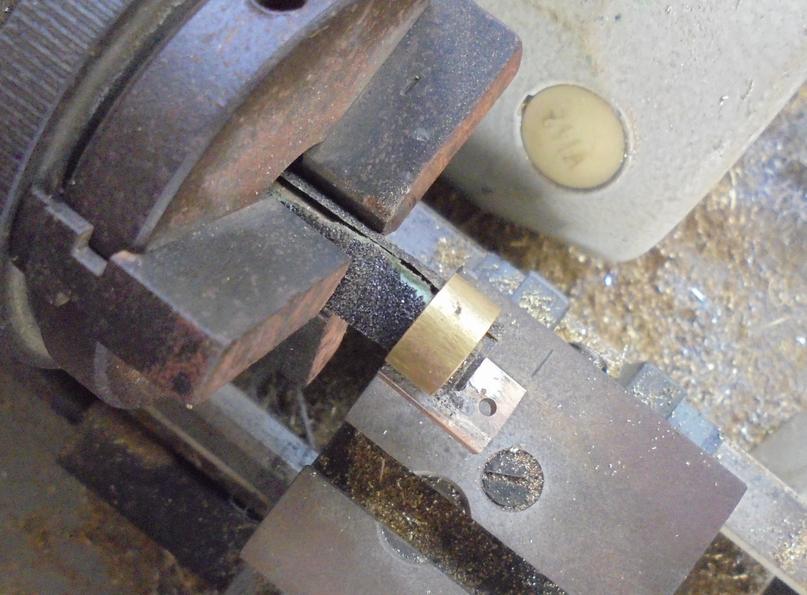 La bague : après usinage de l'intérieur à 28, on peut la mettre à la bonne longueur avec le même outil. Pour son utilisation, il reste à la scier. |