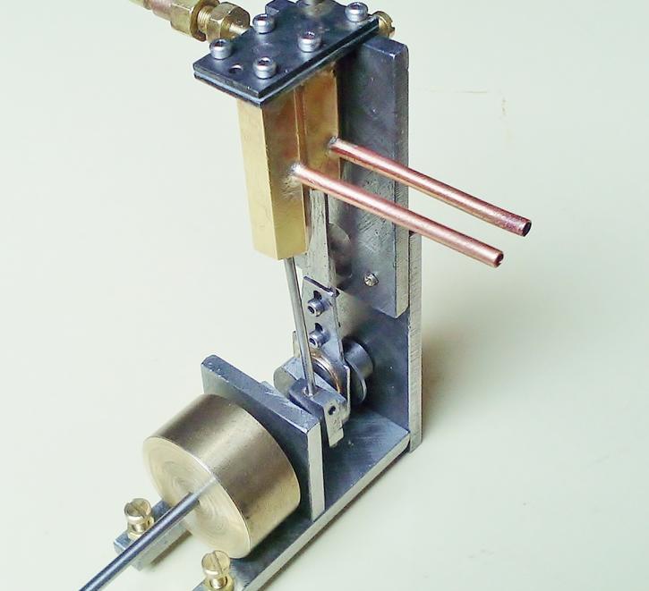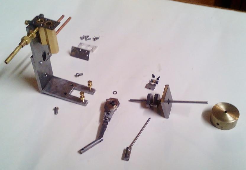 Autres caractéristiques : . une cylindrée de 0.35 cm3 qui correspond au 1/10ème de la capacité du serpentin déjà utilisé et qui a une longueur de 1 m . piston articulé et tiroir cylindrique simplifié, l'échappement se faisant par un trou et non une rainure circulaire plus difficile à obtenir