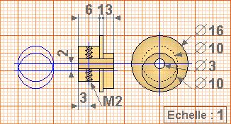 | Face arrière : le trou fileté pour le réglage et 4 trous M2 pour visser le bloc-moteur sur le bâti |