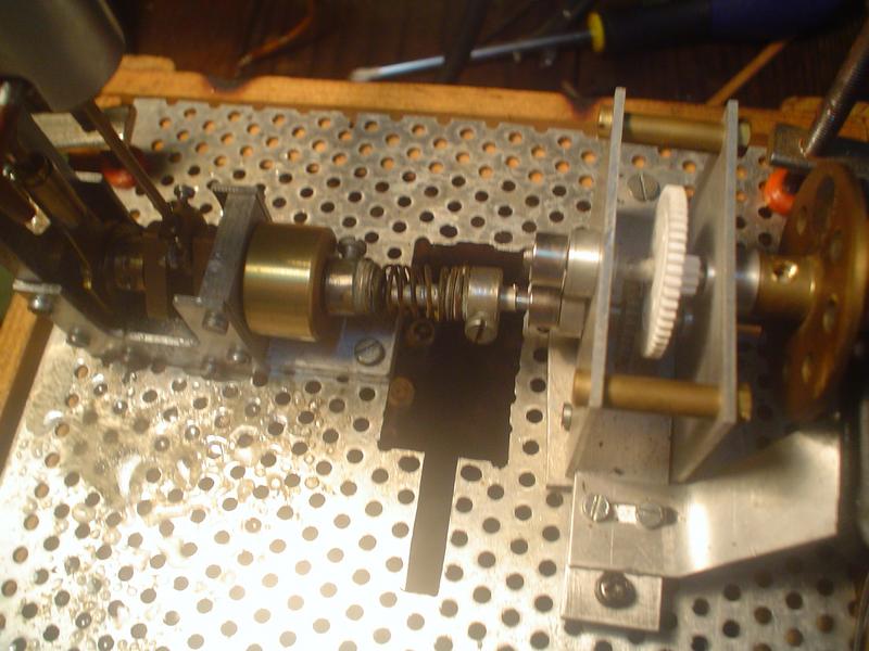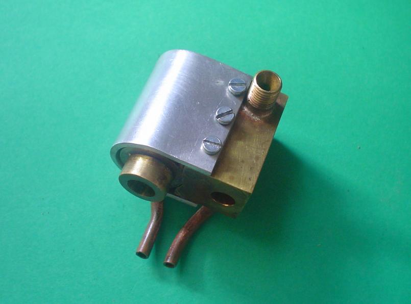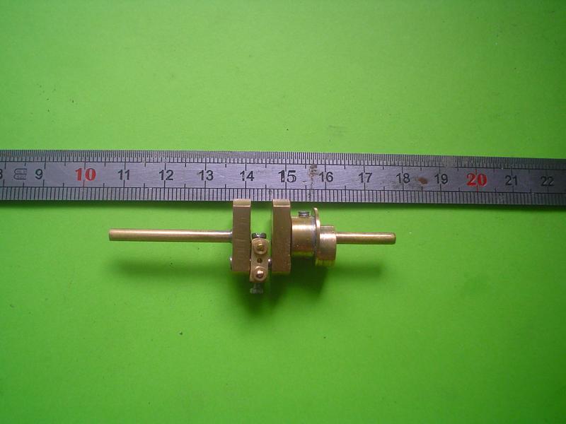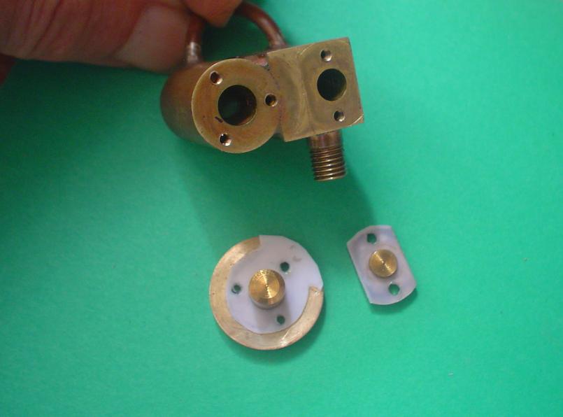 . plus de coupelles téflon qui ne supporteraient pas la température de la vaporisation instantanée, mais un piston "normal" , tout au moins pour moi qui use du téflon :.un rond de laiton de diamètre 6 avec deux fines gorges pour le graissage . un échappement double : l'un en tête, et l'autre en fin d'échappement ; ainsi plus aucune contre-pression . montage sur roulements à billes . un graisseur à déplacement normal mais dont le trou est de diamètre élevé (0.8) pour assurer le maximum de lubrification mais cela ne remplacera pas un graissage par pompe