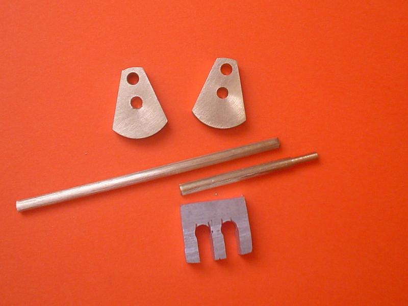 Les flasques, les axes et le gabarit de montage en alu de 5 mm d'épaisseur. |