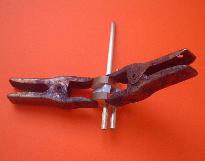 Avant la brasure, mise en place du gabarit et serrage. |