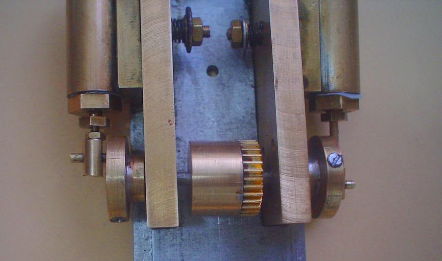 Mais, ce qui ne l'est certainement plus, c'est que les moteurs sont tout bêtement de "vulgaires cylindres oscillants de 18 mm de course, de 14 mm d'alésage et à simple effet -cylindrée totale de 5.5 cm3 ! -; ils doivent attaquer chacun un plateau manivelle ... dont les manetons se présenteront à 180°." A noter de plus que la pression d'utilisation ne dépasse pas les 3 kg.