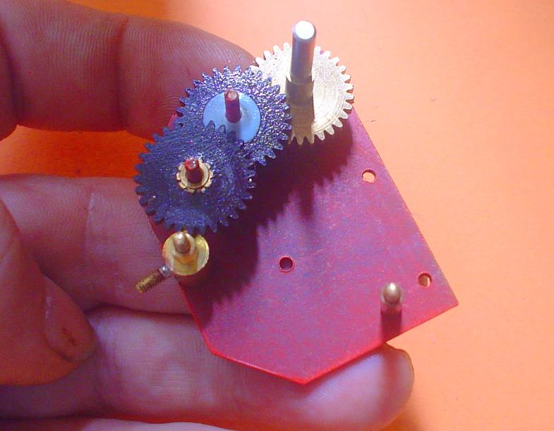 A chaque stage du montage, on vérifiera que ça tourne sans point dur : le montage terminé, en faisant tourner l'axe de sortie, le train d'engrenages doit effectuer plusieurs tours sur une simple impulsion des doigts. |