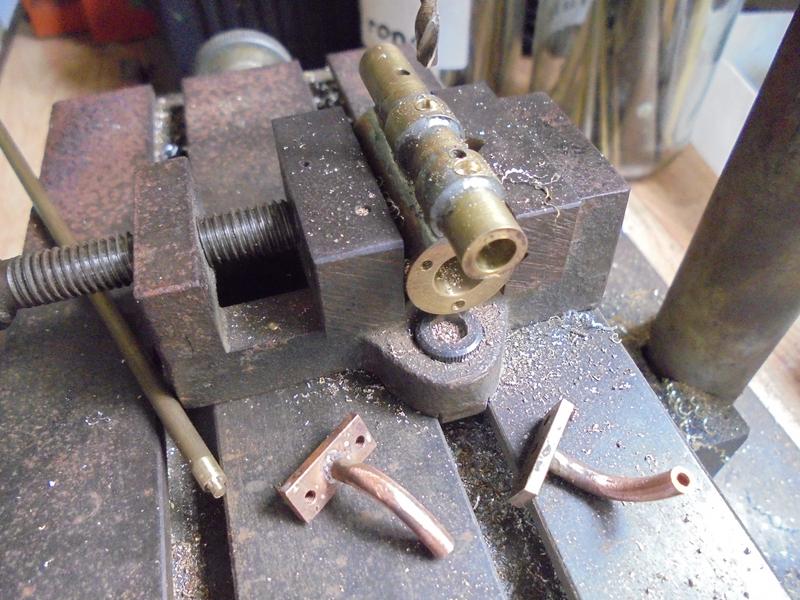 Perçages à diamètre 2 après soudure. Attention, le trou central ne doit pas déboucher dans le cylindre, de même que celui réservé à l'échappement.