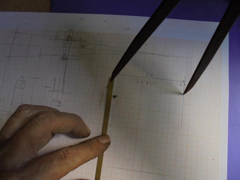 Traçage de la glissière sur du plat de 0.5 d'épaisseur en se servant de papier millimétré. Après perçage la découpe se fait à la scie fine.