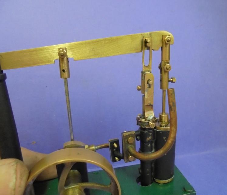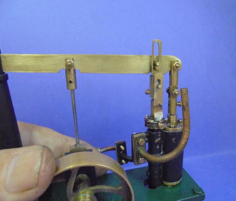 Après avoir régler le déplacement du piston et réglé la longueur de la bielle, amener le repère bas du tiroir (position d'ouverture de l'admission alors que le piston est au PMH) pour que cela coïncide avec la position haute de la coulisse. |