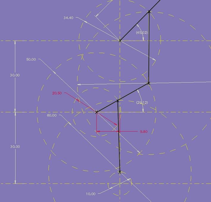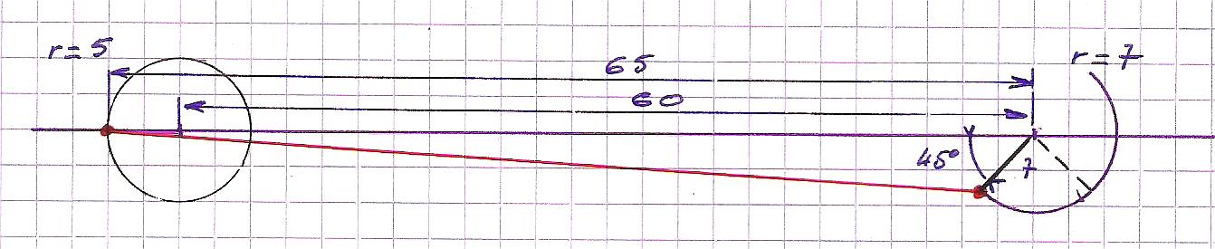 Attention, dans la réalisation pratique, l'entraxe passera à 62 et la longueur de la bielle calculée de la même manière sera de 62.247 ... |