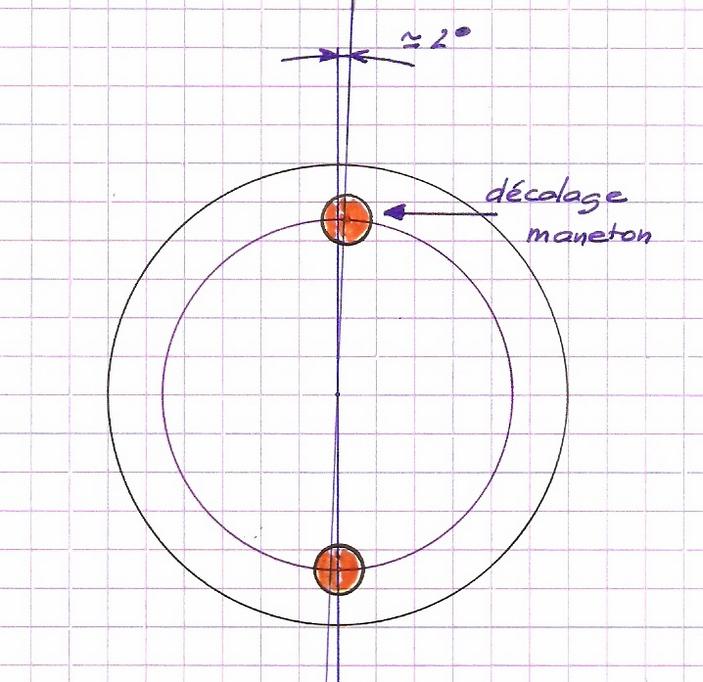 Ce qui fait qu'après une rotation de 20° 40, notre 1/2 trou à 23) donnera une avance à l'admission de 23° - 20°40 = 2°40.