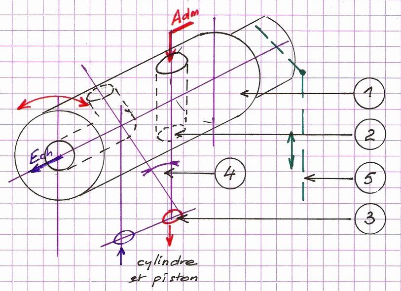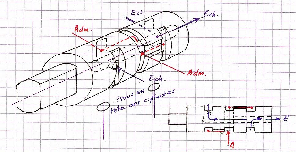 On obtient alors le croquis suivant ou l'on observe que, tout comme sur un oscillant classique il existe une fermeture entre le trou menant au cylindre et ceux de l'admission et de l'échappement.